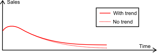 Yet, by producing the forecast at the TOP level, the forecasting model is capturing an fictitious upward trend that only results from the contribution of regular product launches. If this fictitious ends up applied to a lower level - aka SKUs or products - then we significantly over-forecast the sales for each individual product.